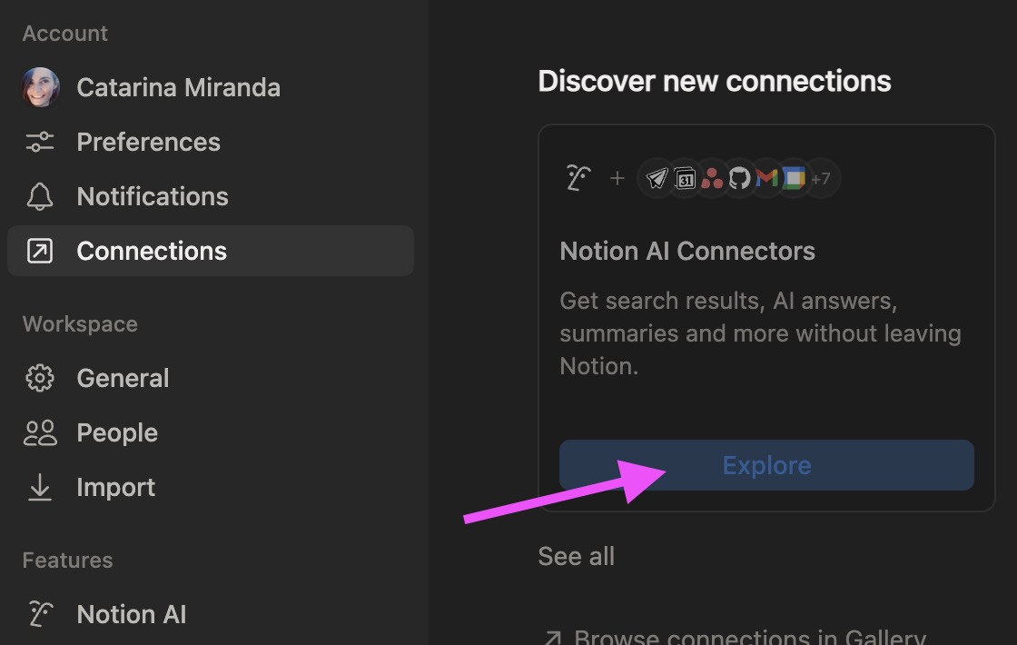 Connections. - Once Notion has access to my calendar, a